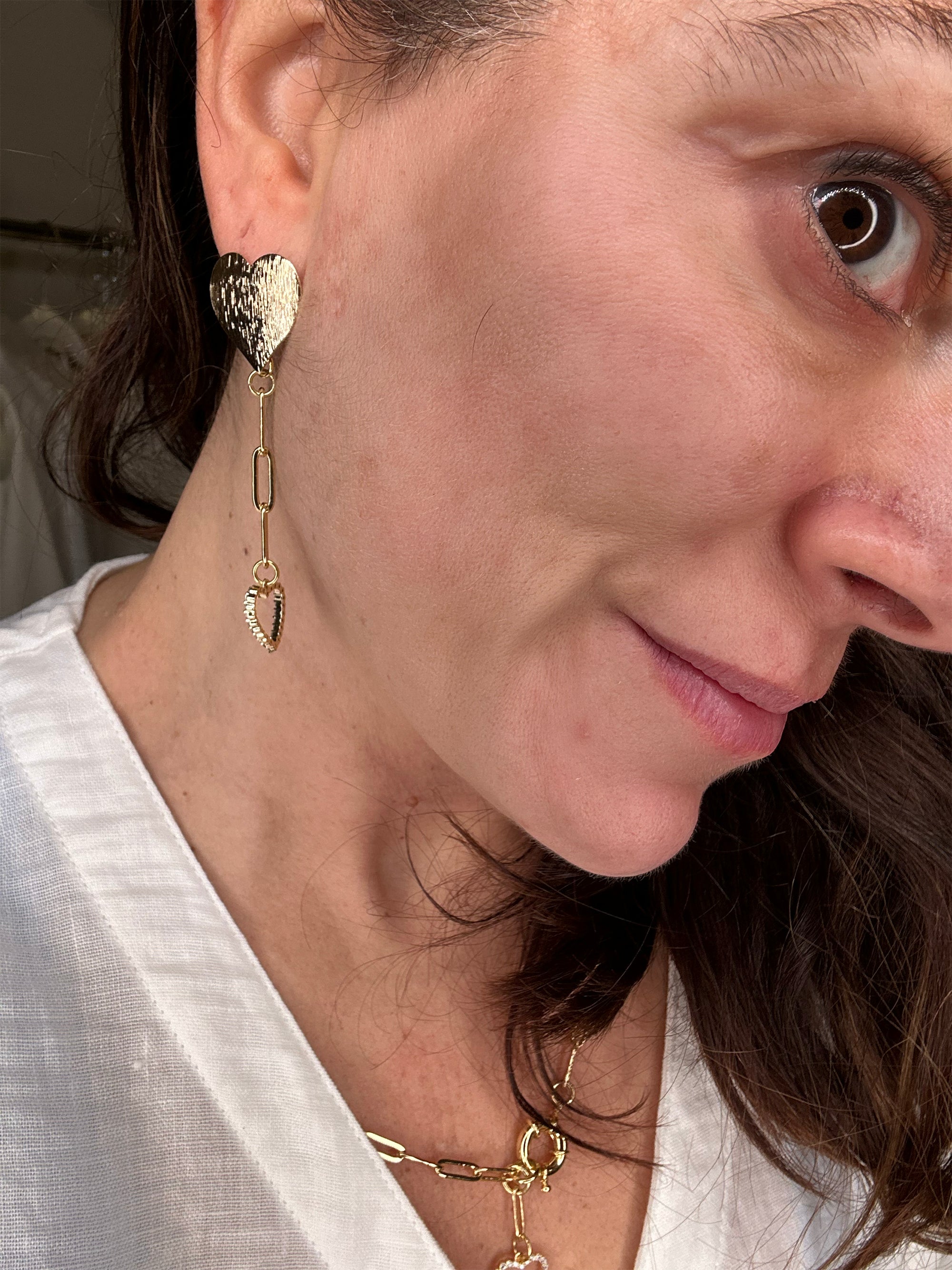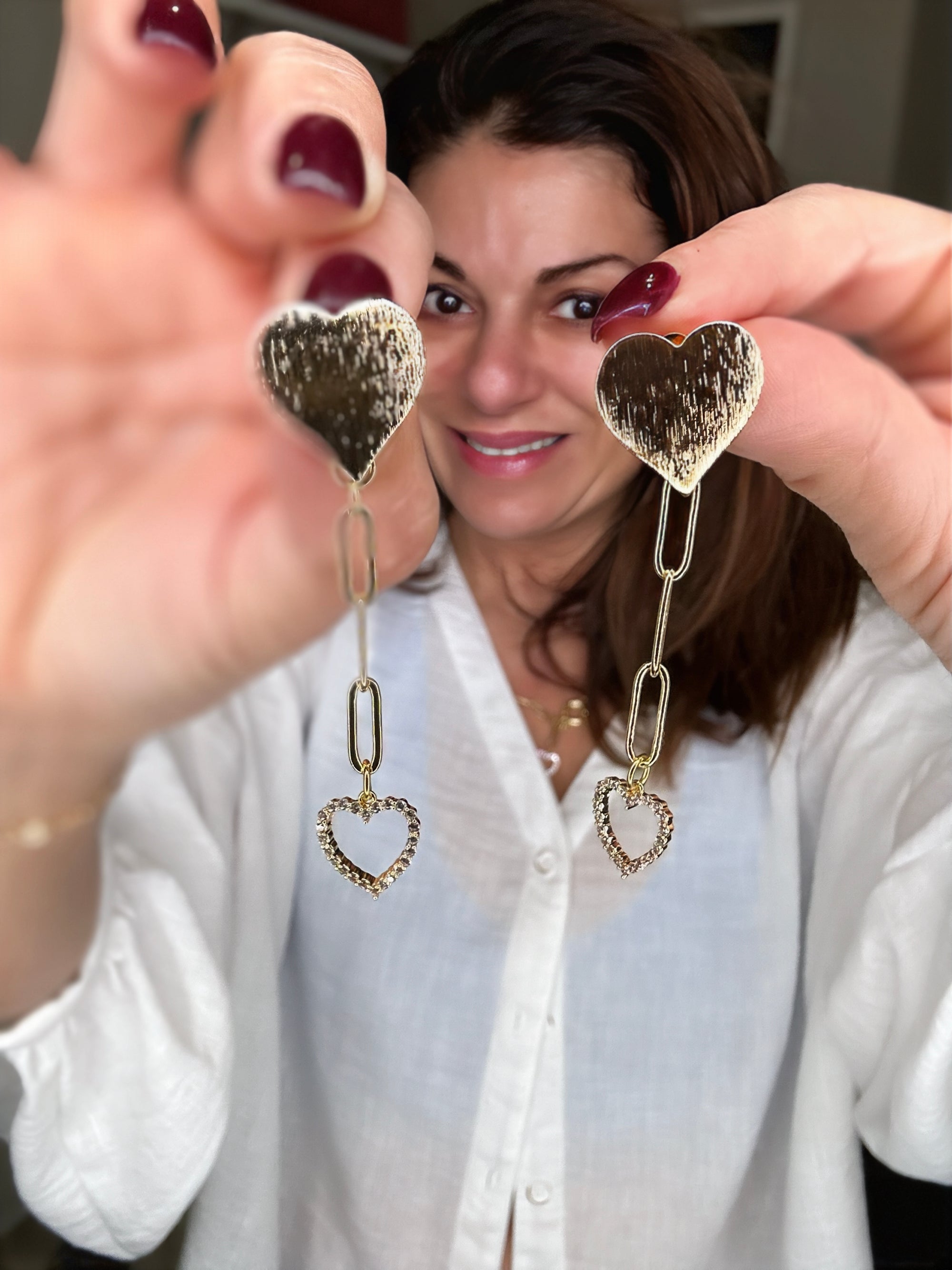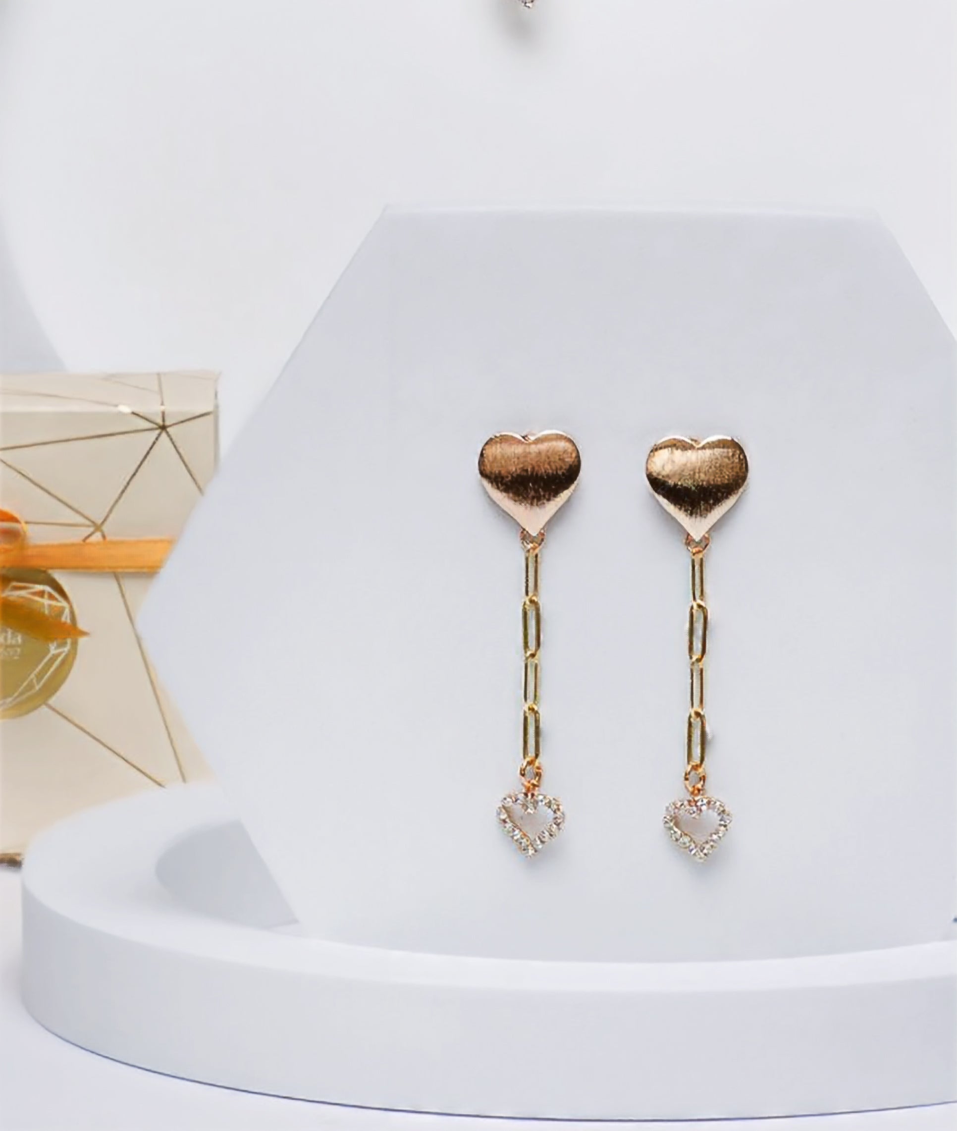 Step into a world of elegance and charm with our Heartfelt Elegance Earrings. Crafted to perfection, these exquisite earrings measure 6 cm in length, from the radiant 14K gold-plated heart to the sparkling zirconia heart accents.