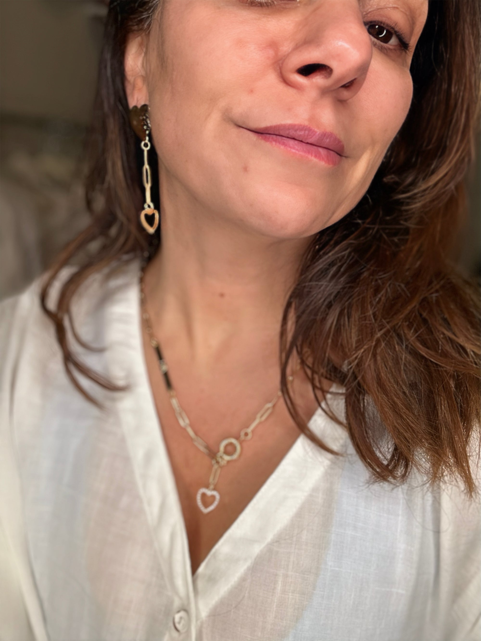 Material: 14K gold-plated with 1 cm zirconia heart accents Length: 6 cm