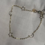 Elevate your accessory collection with our exquisite 14K Gold-Plated Star and Moon Anklet. Measuring 23 cm in length, this delicate anklet features a charming chain adorned with stars and moons, symbolizing celestial beauty and elegance. Perfect for adding a touch of sophistication to any outfit, this anklet is an ideal gift for loved ones or a luxurious treat for yourself.