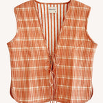 The Adela Quilted Vest is a stylish and versatile piece designed to keep you warm while adding a chic touch to your outfit. This sleeveless vest features a padded body and two front ties for closure, giving you the option to wear it open or closed for different looks.