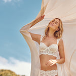 Our Bustier Vintage bra is a highly sought-after product, providing an ideal fit for all types of busts, including fuller busts. Crafted from delicate French lace, this piece offers a beautiful look as well as superior comfort and support. To complete the look, take a look at our two proposed matching panties: PantyCulotteVintage and StringVintage.