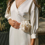 Delicate flower accessory made from soft angel skin fabric. Wear it in your hair or on your dress. Elegant, simple, and handcrafted.