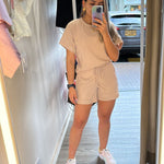 Indulge in the perfect combination of comfort and style with our Drop-Sleeve Round Neck T-Shirt and Elastic-Waist Shorts Set. Elevate your loungewear collection and unlock a world of casual elegance. Shop now and experience the epitome of comfort and fashion.