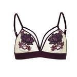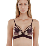 Bralette in stretch tulle, velvet straps trimmed at the armhole and neckline, embroidered floral appliqué on cups. 4 position hook-and-eye. 100% cotton reinforcement. Indulge in the sheer seduction of our Deluxe Soft Cup Triangle bralette. Made with stretch tulle and trimmed with luxurious velvet straps at the armhole and neckline, our bralette is sure to make you feel like a true work of art. Featuring beautiful embroidered floral appliqué on the cups, this bralette is both stylish and functional with its 4 position hook-and-eye closure and 100% cotton reinforcement. Elevate your lingerie collection with our Deluxe Soft Cup Triangle and experience the elegance and sophistication of our premium product.
