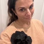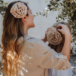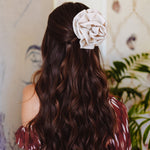 Handcrafted fabric flowers with a 2.5-inch (6.5 cm) clip and brooch clasp for multiple styling options.