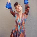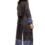 Introducing our belted long-sleeved kimono, the perfect addition to your eco-friendly wardrobe. Made from recycled plastic bottles collected from the sea, this kimono is not only stylish but also sustainable. We have also used eco-friendly digital printing techniques that intensify the quality of the fabric without requiring water or chemical agents. Featuring a tie closure at the waist, long sleeves, and a cut below the knee, this kimono is perfect for any occasion. You can wear it as a cover-up at the beach, layer it over your favorite outfit, or use it to add a touch of elegance to your loungewear. Our commitment to sustainability and ethical production practices makes this kimono the perfect choice for anyone who wants to make a positive impact on the environment while looking stylish. Choose your usual size for the perfect fit and enjoy the comfort and durability of this eco-friendly kimono.