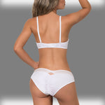 Sumptuous lycra panty boasting excellent coverage in a radiant ivory hue, complemented with artfully engraved lace stripes for an intriguing and alluring effect. Enjoy sublime comfort and a ravishing silhouette with this panty - a must-have for anyone desirous of captivating confidence. Pair it with the BRA for a stunning finish.