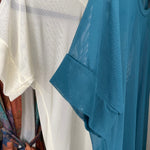This is a stylish and unique shirt made of tulle material, with a delicate transparency that adds a touch of femininity. The short sleeves, relaxed fit, and round neckline make it comfortable and versatile, perfect for pairing with all bralette styles. Designed and manufactured in Colombia, this shirt is a must-have for the fashion-conscious woman who wants to make a style statement. With a variety of colors to choose from, this shirt is a trendy and eye-catching choice for any occasion.