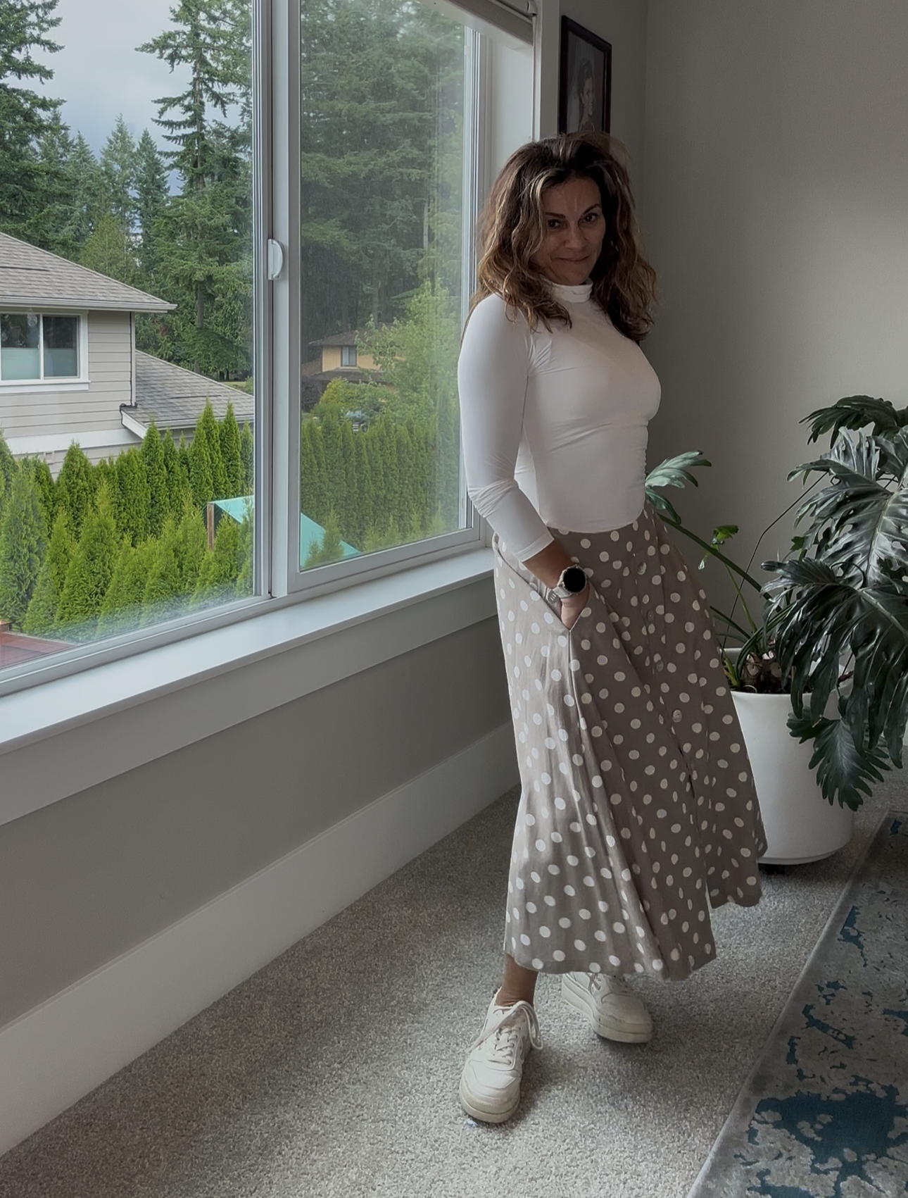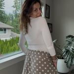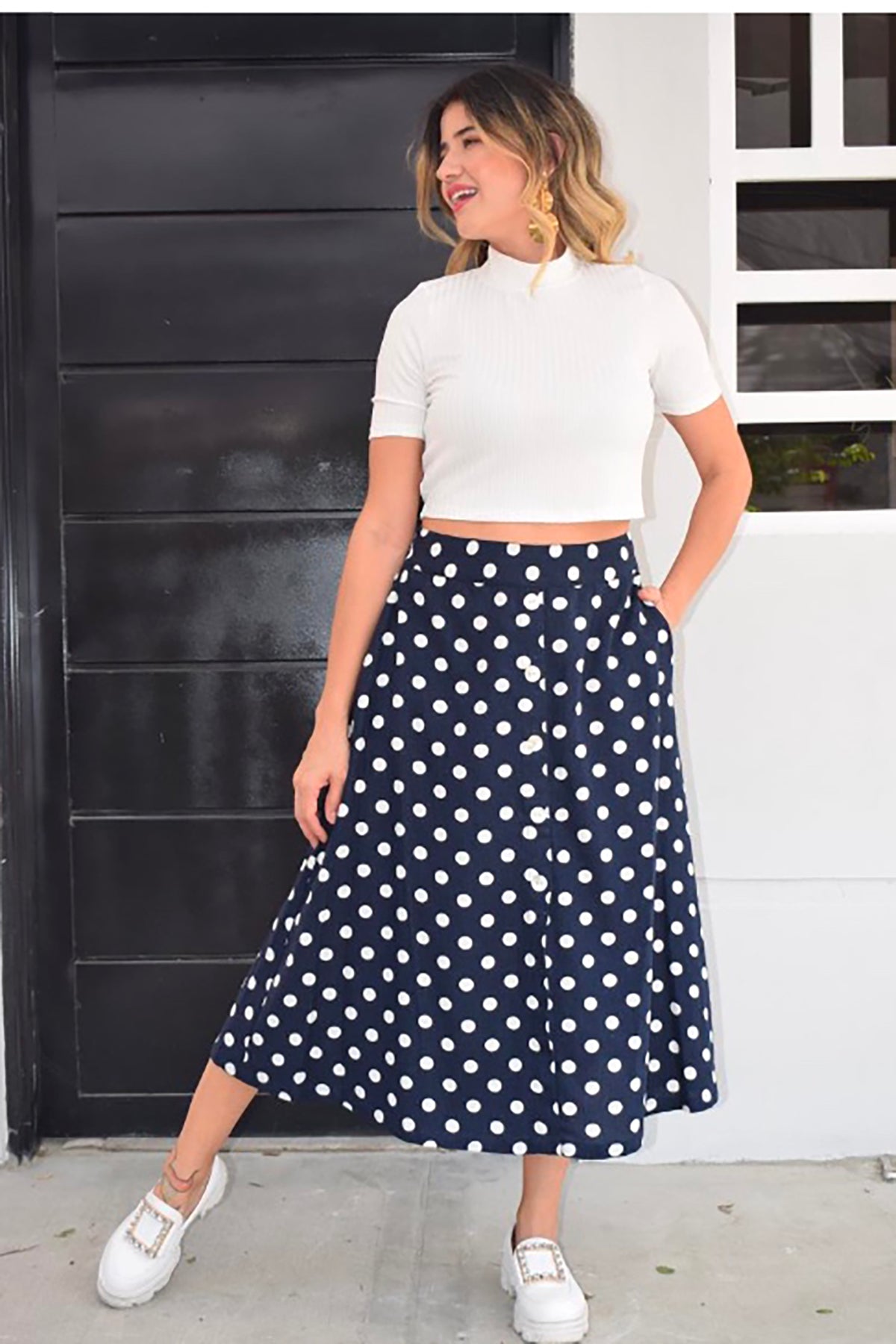 Soft Linen Polka Dot Midi Skirt – With Pockets