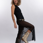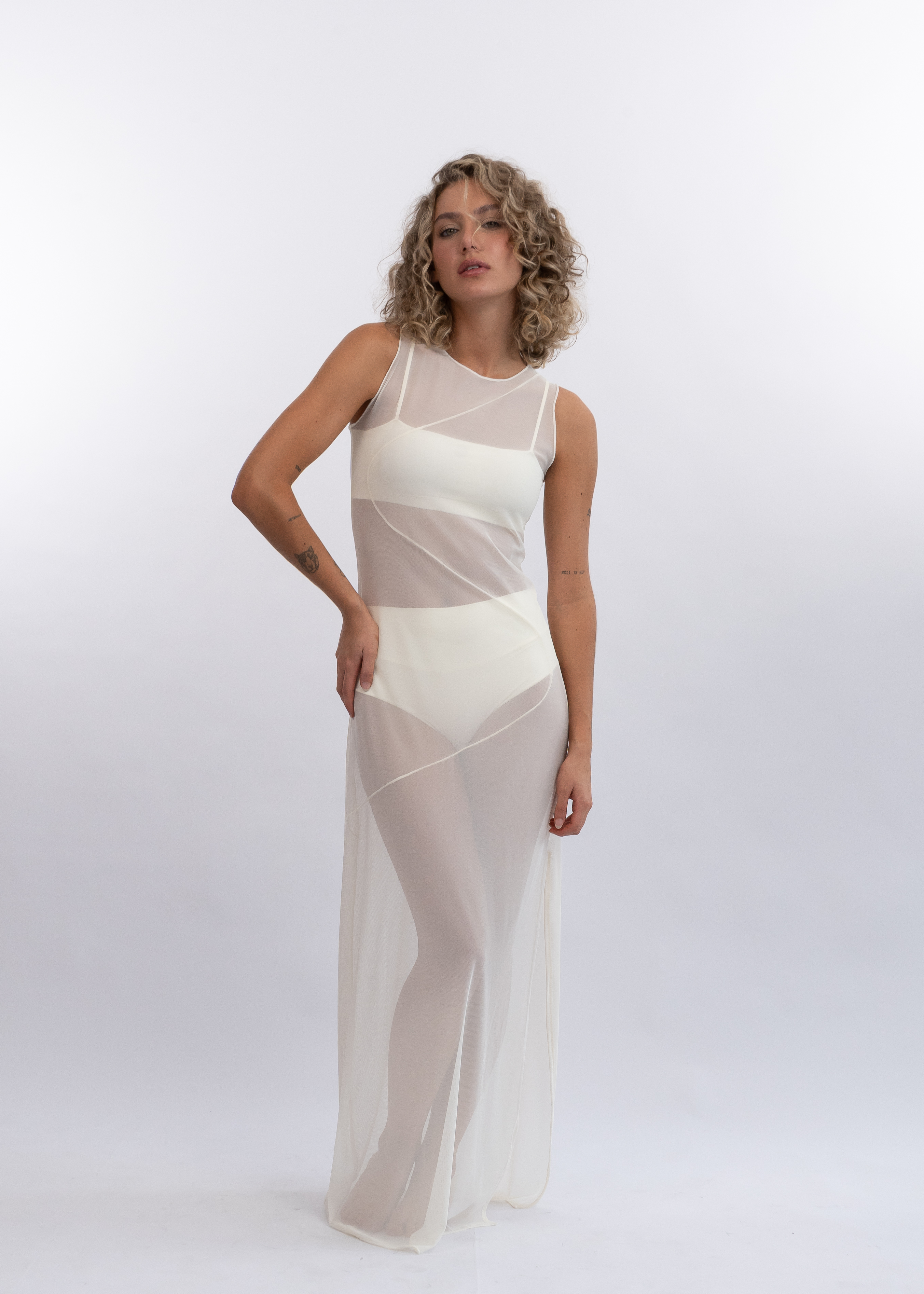 This sleeveless maxi dress is crafted entirely from soft mesh, featuring high side slits and a chic halter neckline for a modern, effortlessly edgy silhouette. Lightweight and breathable, it’s perfect for layering and expressing your unique style.