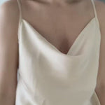 Elevate your wardrobe with this luxurious camisole. Made of silky, smooth fabric that drapes elegantly over your curves, it features thin adjustable straps and a dramatic cowl neckline. Cut on the bias to fit and flatter your body, this camisole adds a touch of femme sophistication to any outfit. Perfect for layering or wearing alone, this versatile piece will be a staple in your closet for seasons to come.