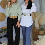 Elevate Your Holiday Style with Our Long Sleeve Shirt-Style Blouse! Crafted from luxurious cotton, this blouse is not just a piece of clothing; it's a versatile statement for the festive season. The extended length and rounded bottom provide a flattering silhouette, while the buttoned cuffs add a touch of sophistication. Wear it tucked into your pants for a polished look, let it flow loosely for a relaxed vibe, or cinch it with a belt for a chic ensemble. This blouse seamlessly transitions from casual gatherings to festive occasions, making it a must-have for your holiday wardrobe. Embrace style and comfort effortlessly - shop now for a timeless holiday look!