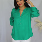 Versatile Sleeves: What sets this blouse apart is its versatile sleeves, which can be effortlessly adjusted to either three-quarter length or full-length using adjustable buttons. This adaptability means you can wear it to suit your personal style and the occasion, enhancing its practicality.