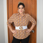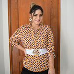 Introducing our super comfortable and stylish shirt. This versatile piece features 3/4 sleeves and buttons on both the sleeves and neckline, creating a polished and put-together look. The shirt also features a classic polo V-neckline for added elegance. The model is wearing a size large, and this shirt is available in sizes up to 3X, making it a great option for all body types. Made from 100% rayon, this shirt is breathable and soft against the skin, ensuring all-day comfort. Whether you're dressing up for a special occasion or keeping it casual, this shirt is sure to be a staple in your wardrobe.