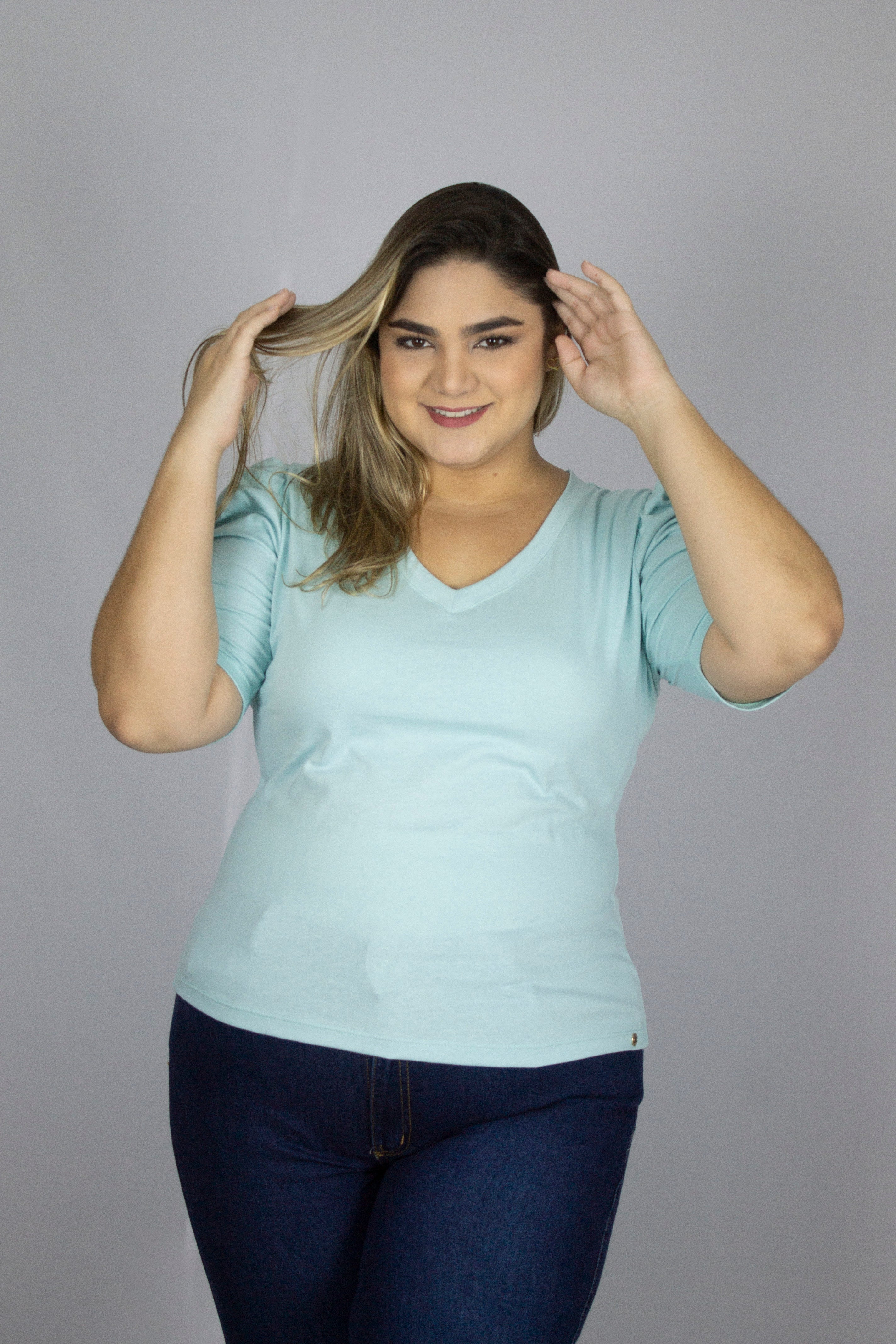 This product is a short-sleeved, V-neck t-shirt made of soft and breathable cotton. It is available in six popular colors and a variety of sizes including L, XL, and 2XL. The shirt is perfect for casual wear and can be paired with jeans, shorts, or khakis for a comfortable, relaxed look. If you are looking for a different size, please contact us and we will do our best to accommodate your request. The model wearing the shirt is 1.70 m tall and typically wears size L/XL in blouses and 16/18 in pants. Shop now to add this versatile and stylish t-shirt to your wardrobe.