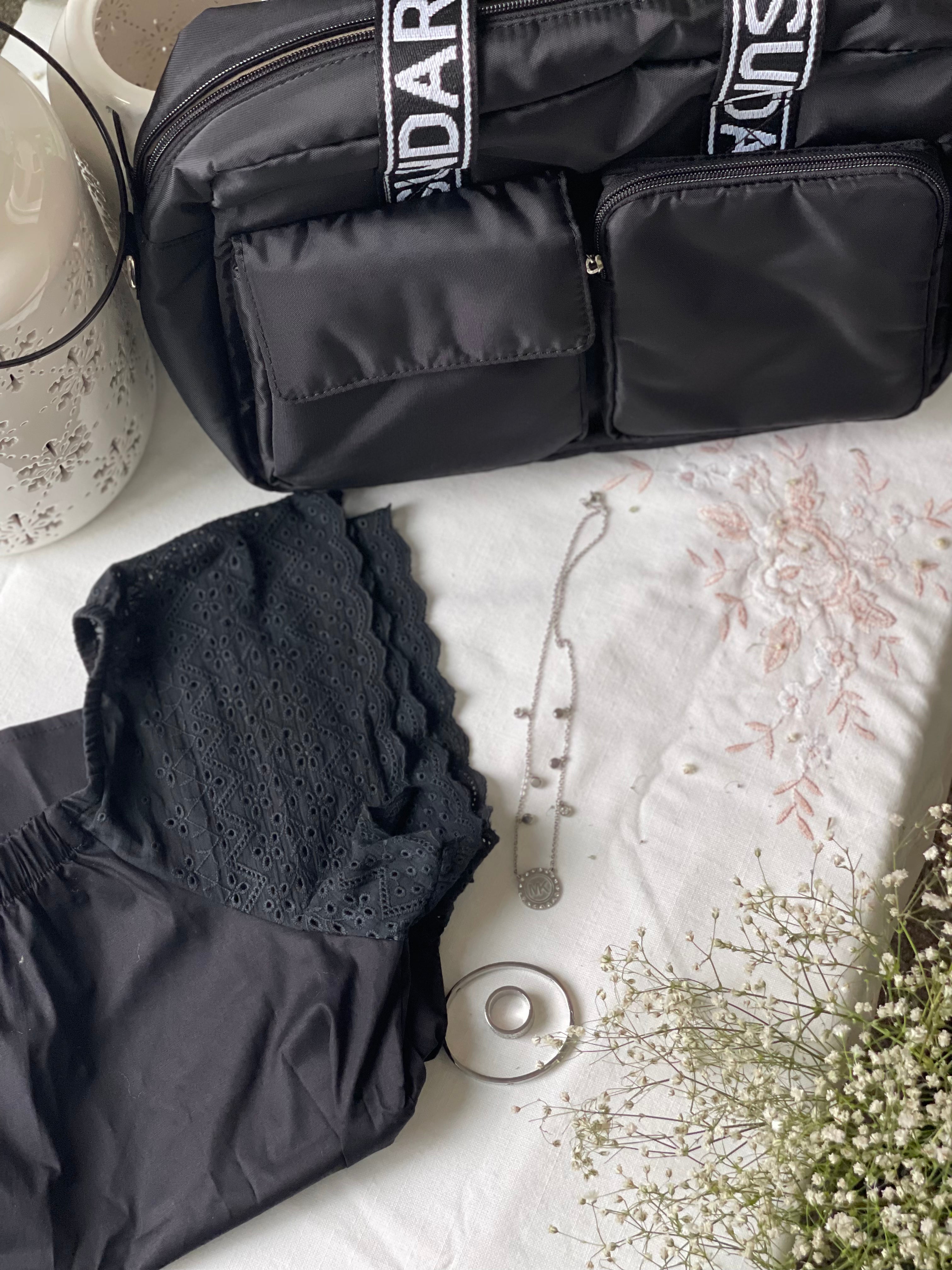 Black wide neck shirt, made of cotton with spandex. Design with opening on the back, which makes it more comfortable and sexy. Special design on the sleeves. Model is wearing Size Large. Experience unparalleled comfort and effortless style with our black wide neck shirt. Crafted from high-quality cotton and spandex, this shirt is both soft and stretchy - perfect for long-lasting wear. The unique design features an alluring back opening, adding a touch of sensuality to an otherwise classic silhouette. The sleeves are adorned with a special pattern, elevating the look even further. As worn by our model in a size large, this shirt is the perfect statement piece for any sophisticated wardrobe.