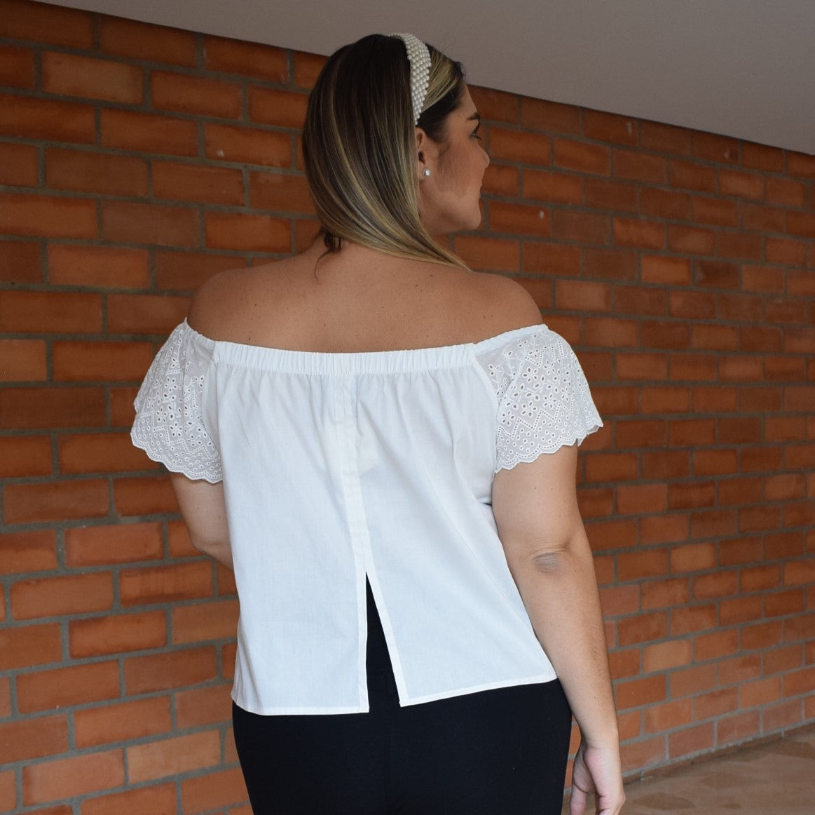 White wide neck shirt, made of cotton with spandex. Design with opening on the back, which makes it more comfortable and sexy. Special design on the sleeves. Model is wearing Size Large. Indulge in ultimate comfort and elegance with our Wide Neck White Shirt, crafted from a luxurious blend of cotton and spandex. With thoughtful details like a back opening for maximum breathability and a unique sleeve design, this shirt effortlessly blends style and functionality. Available in Size Large, our shirt is designed to turn heads and keep you feeling confident all day long.