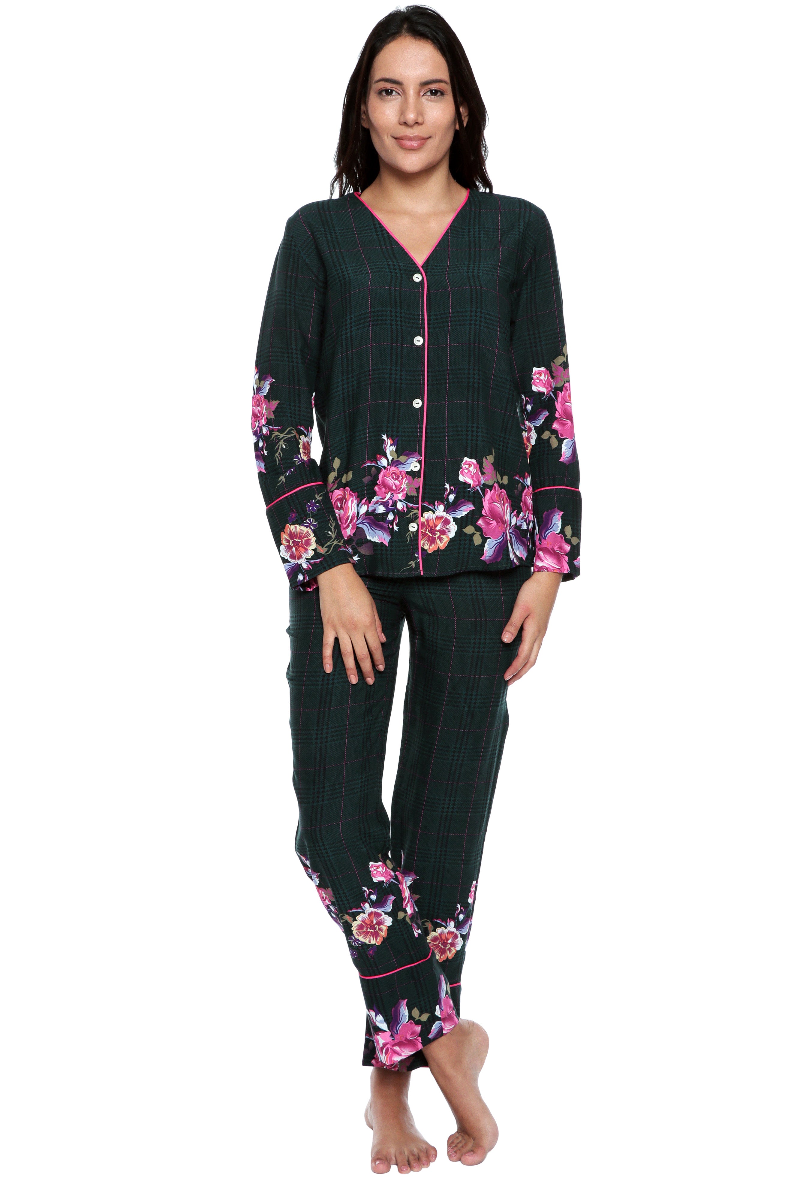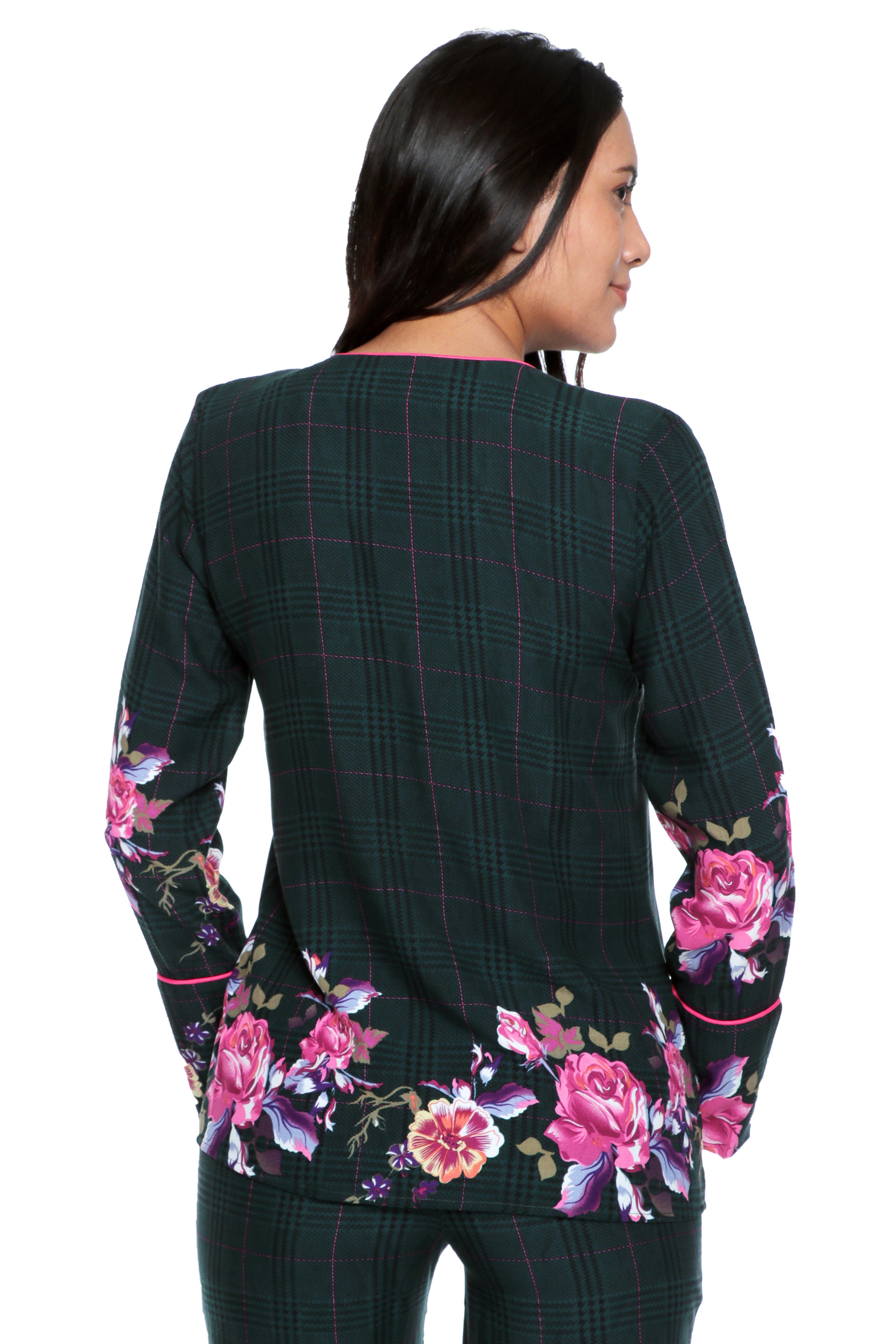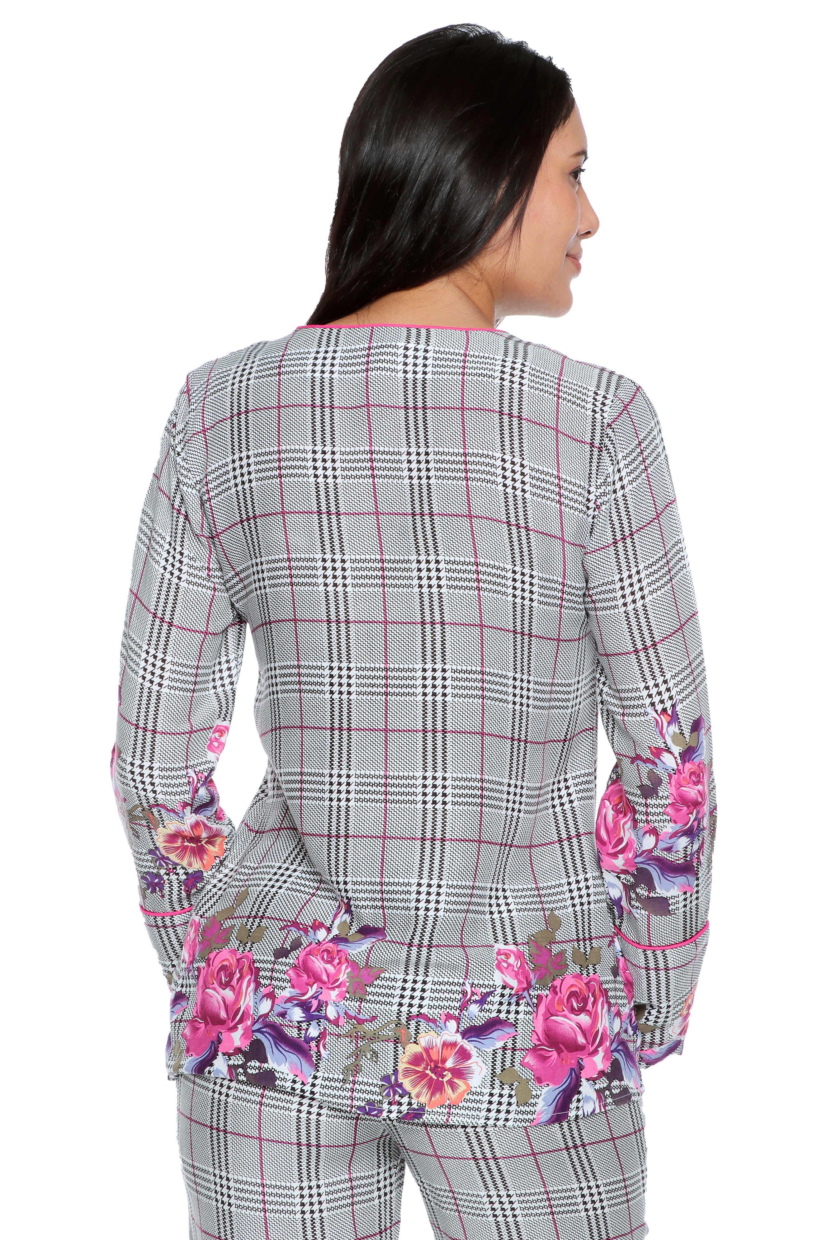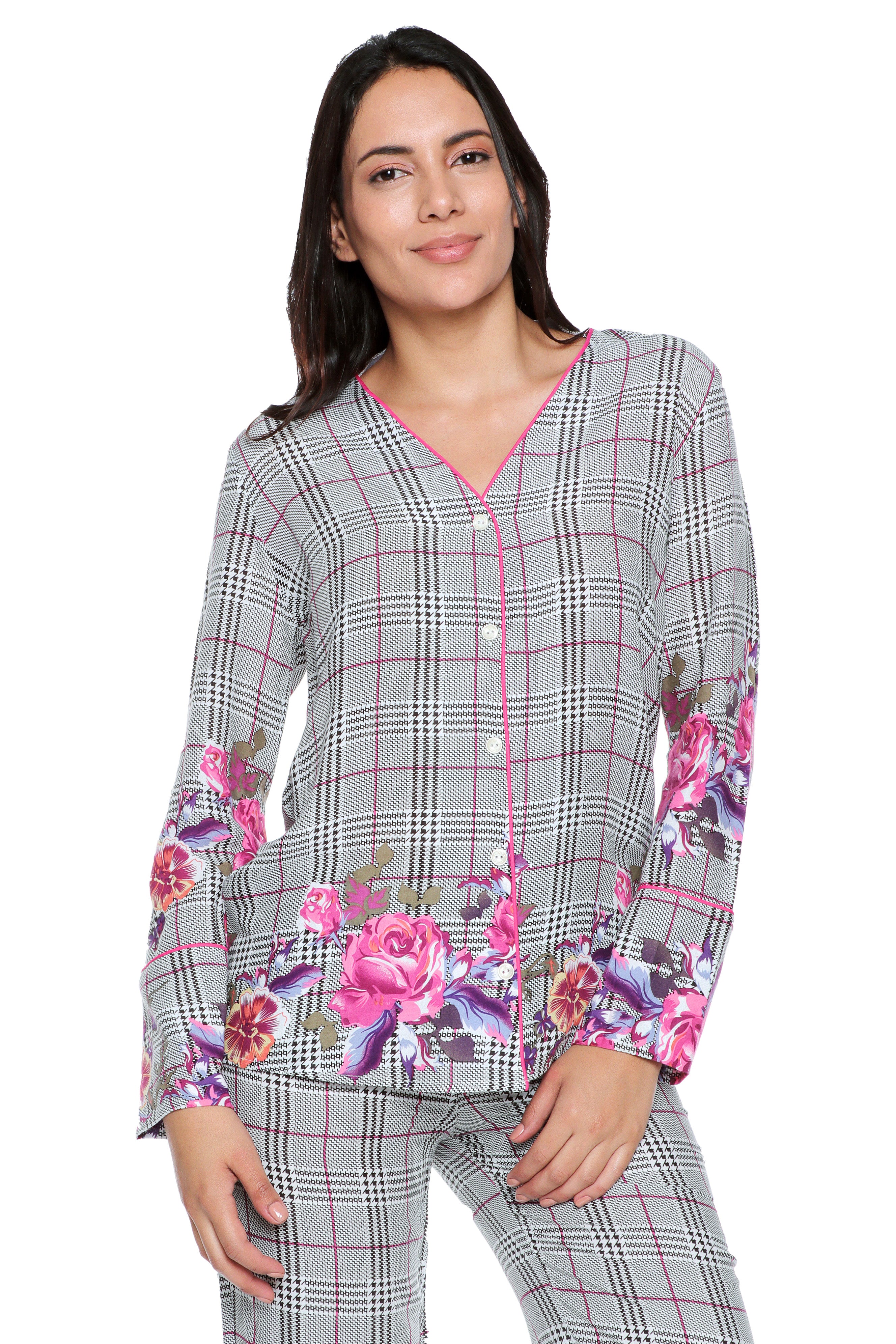 Stay comfy and stylish all day long with our pajama or loungewear set. Featuring a chic plaid print on a soft cotton and viscose blend, these set is perfect for both day and night. The pants are straight, loose on the waist area. The long sleeves and button-up design make it perfect for any occasion, while the V-neckline adds a touch of style.