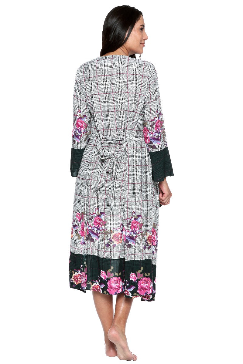 Plaid Floral Kimono in Cotton-Viscose Blend