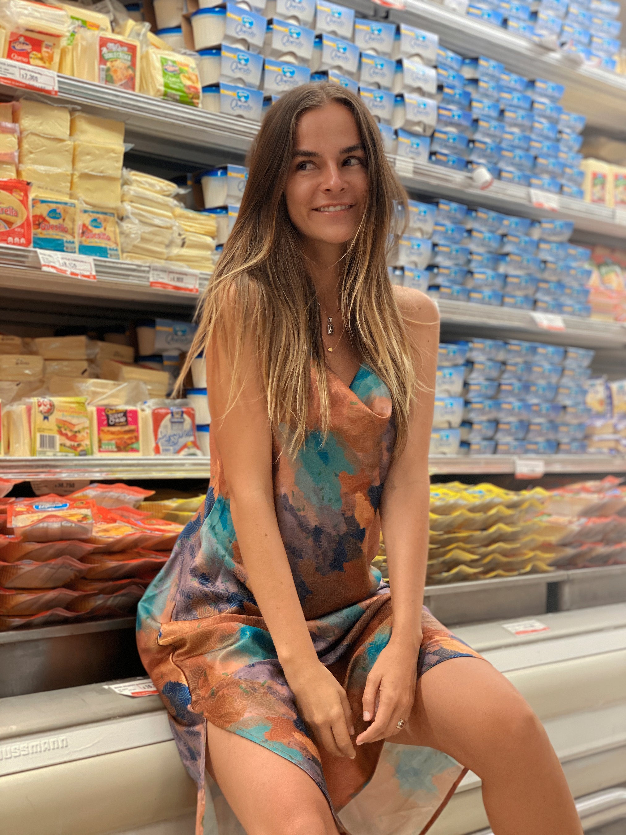 Crafted from silky satin fabric made of recycled plastic bottles from the sea, and printed using eco-friendly Greentex technology, this dress is not only stylish but sustainable too. You can choose from two gorgeous prints inspired by the work of Gustav Klimt - the playful yellow dolls or the serene forest.