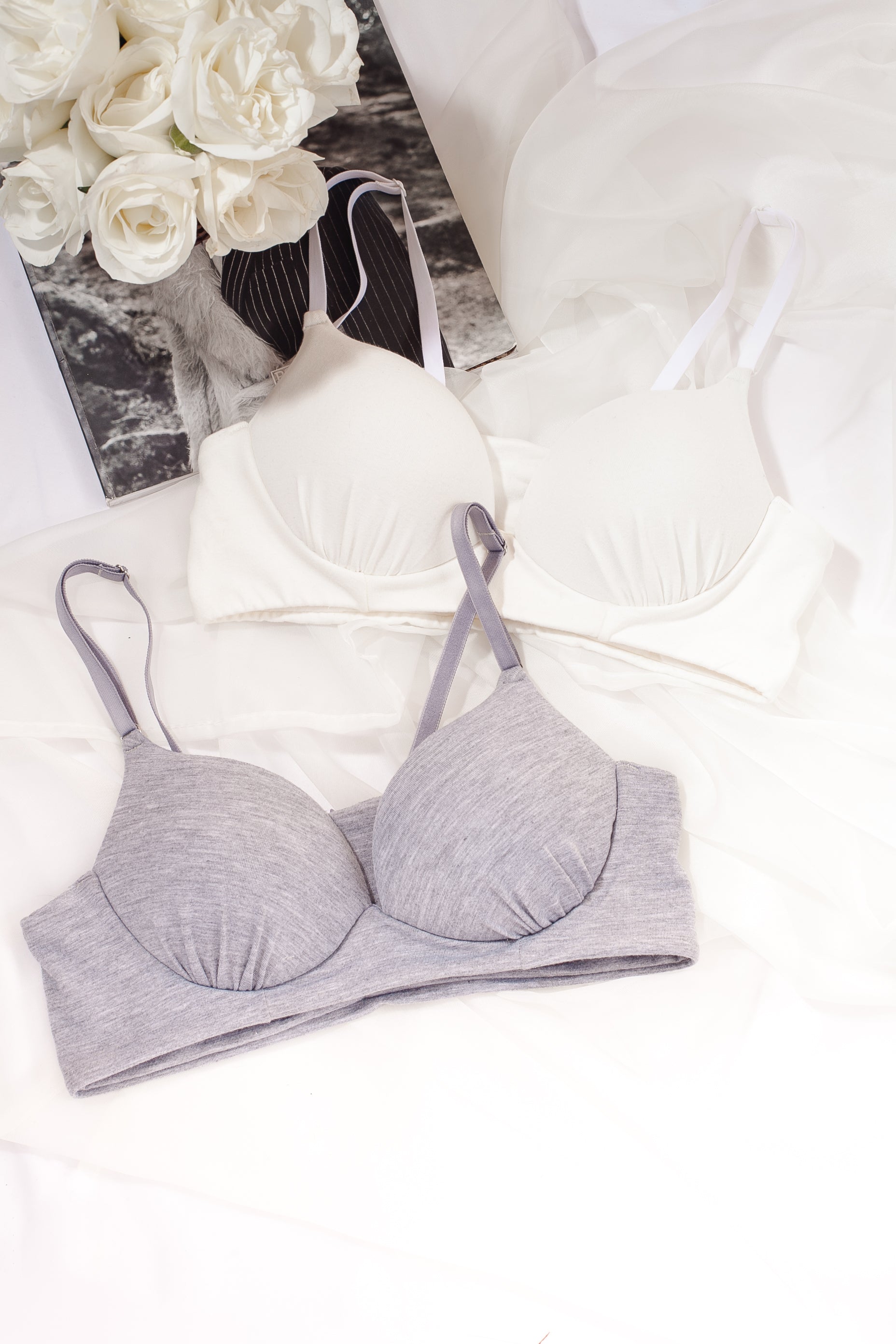 Design: Soft cups with no underwires to provide gentle support and maximum comfort.