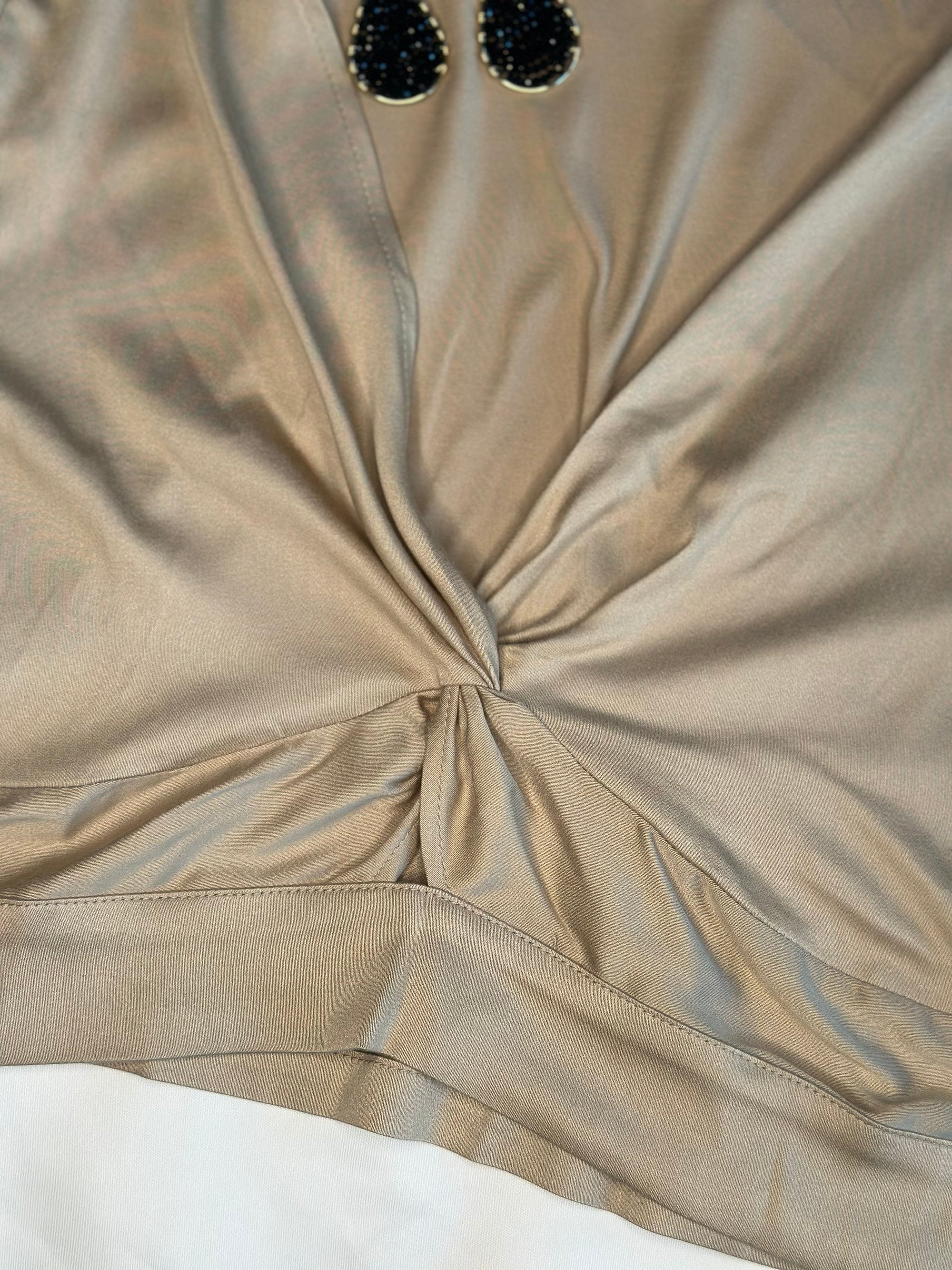 Elevate Your Festive Style with our Cross-Front Rayon Lycra Crop Top! This trendy piece is perfect for the holiday season, featuring a flattering V-neck and short sleeves for a chic look. Crafted from a luxurious blend of rayon and lycra, it offers both comfort and style. The wrap-around design adds a touch of sophistication to your outfit, making it a versatile choice for holiday parties or a night out. Available in three trending season colors - black, beige, and red. Embrace the holiday spirit with fashion-forward flair. Shop now and make a statement this season.