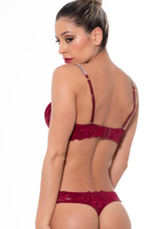 Luxury Lace Underwired Bra: Rhinestone Strap Elegance