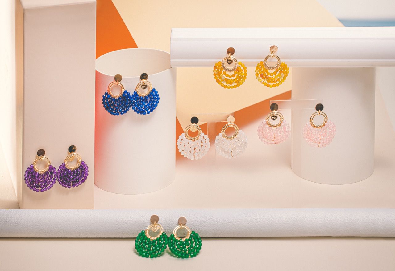 Experience the artisanal beauty of our Handwoven Colorful Agate Hoop Earrings—each pair uniquely crafted for you.
