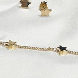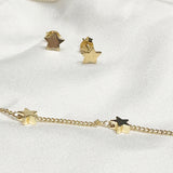 Indulge in luxury with our exquisite handmade jewelry set, meticulously crafted for the modern woman. The Star Pendant Necklace boasts a dazzling star-shaped pendant adorned with a sleek bar and extender chain, providing adjustable wear at 40cm with a 5cm extender. Paired with our "Mini Star Earrings," measuring 4.5mm, this set creates a captivating ensemble that adds a touch of elegance to any outfit.