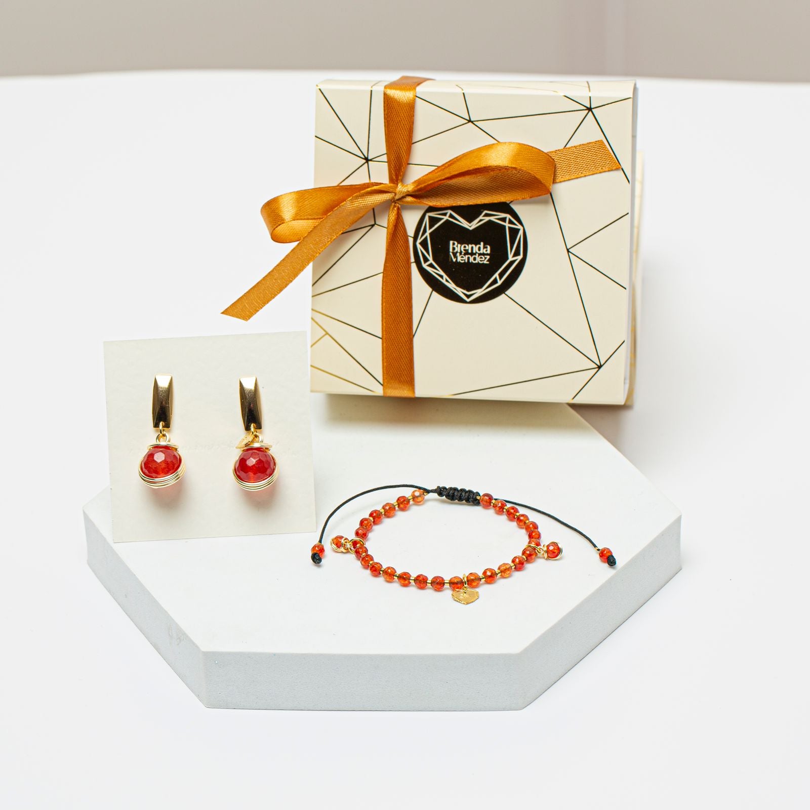 Bracelets & Earrings: Natural Agate Stones – Unique, vibrant, and full of energy.
