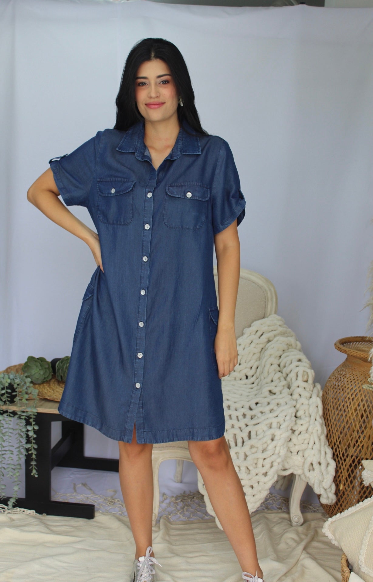 Introducing our "Colombian Tencel Cargo Dress" – a perfect blend of style and practicality.