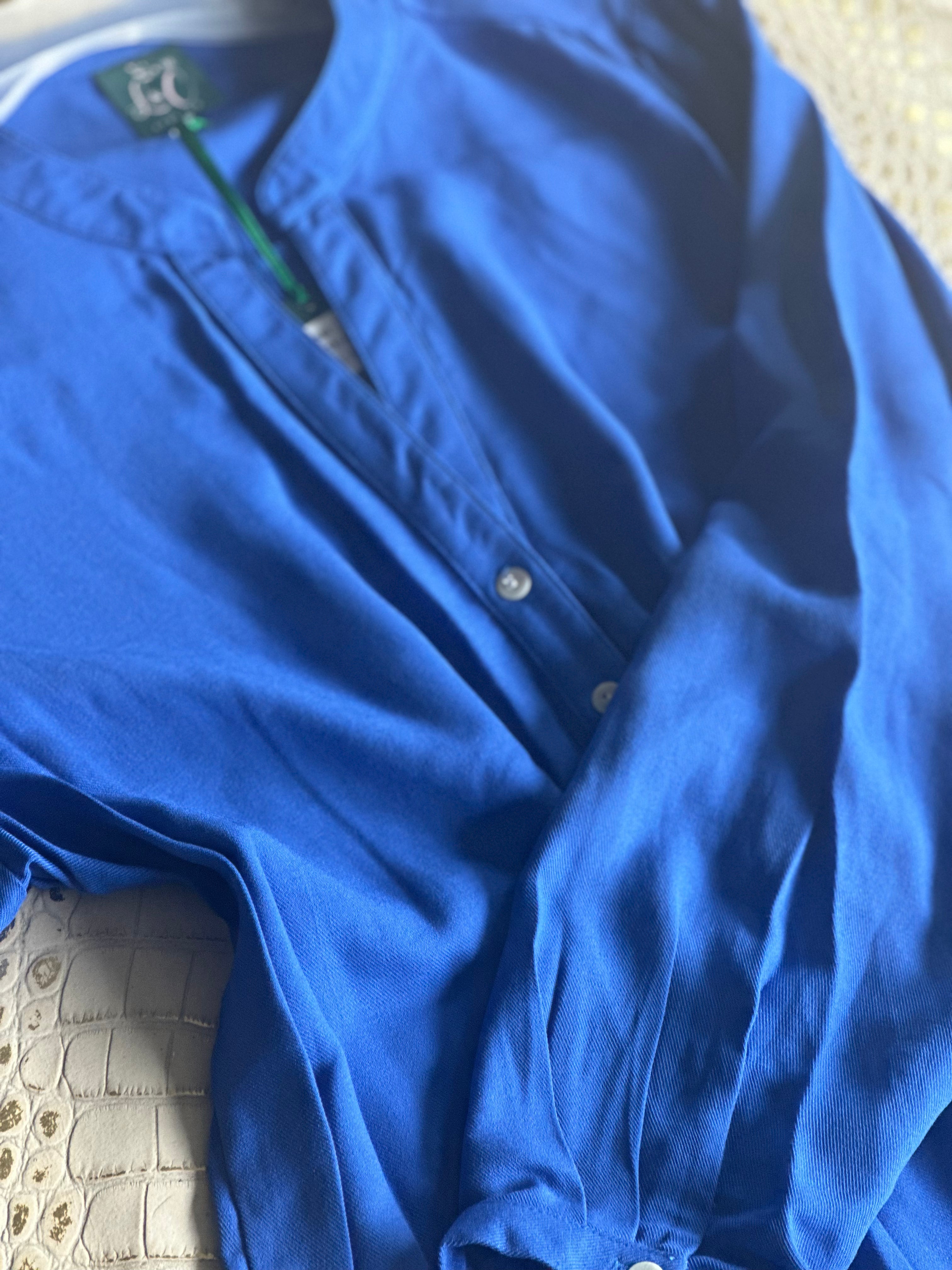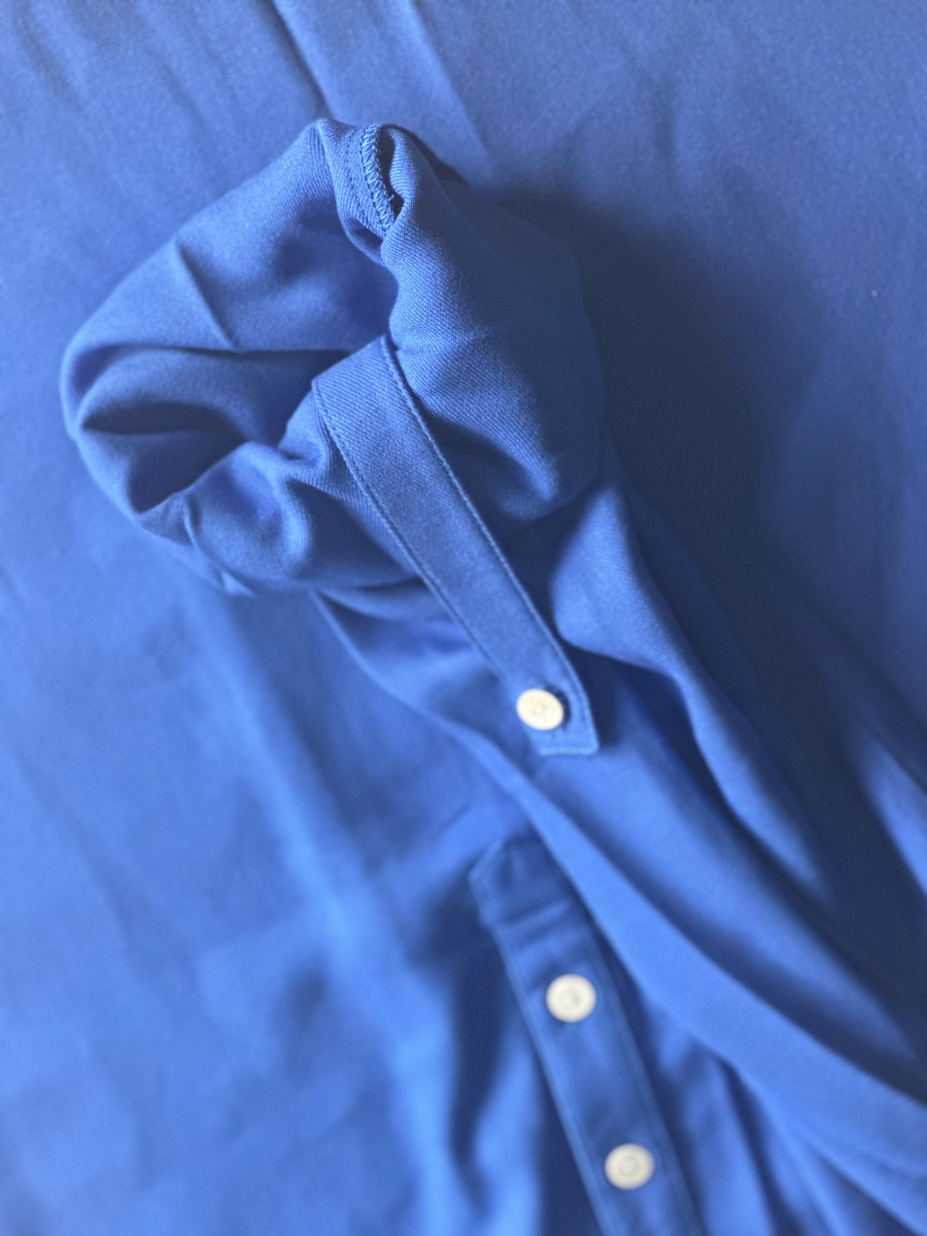 Versatile Sleeves: What sets this blouse apart is its versatile sleeves, which can be effortlessly adjusted to either three-quarter length or full-length using adjustable buttons. This adaptability means you can wear it to suit your personal style and the occasion, enhancing its practicality.