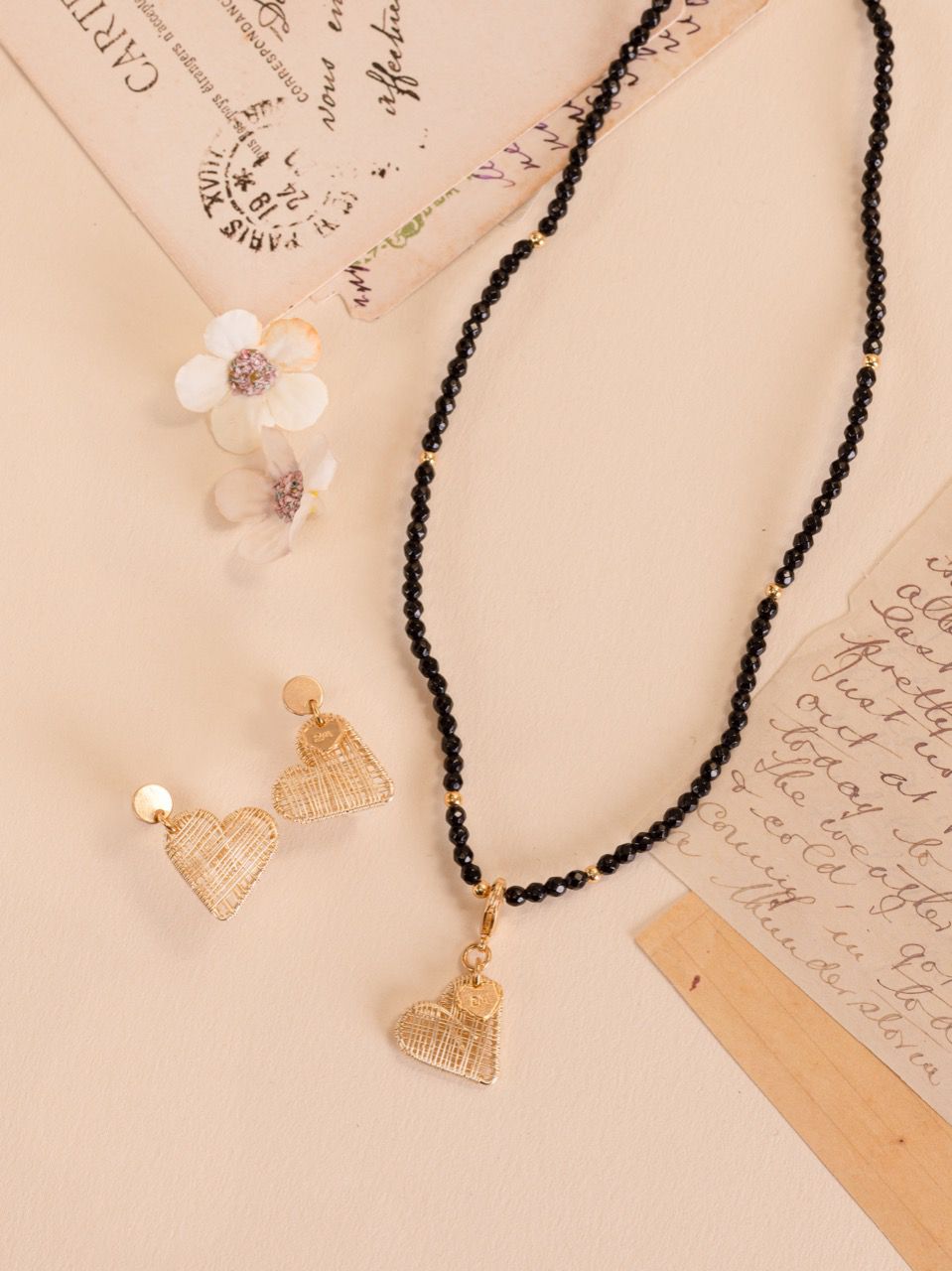 Immerse yourself in the elegance of our Agate Necklace adorned with our signature woven heart design. Crafted with exquisite agate stones, this necklace boasts a length of 54 cm, ensuring a graceful drape around the neck. Our necklace features a handwoven detachable heart charm, allowing you to customize your look or mix and match with other jewelry pieces. Versatile and unique, it's the perfect way to express your individuality.