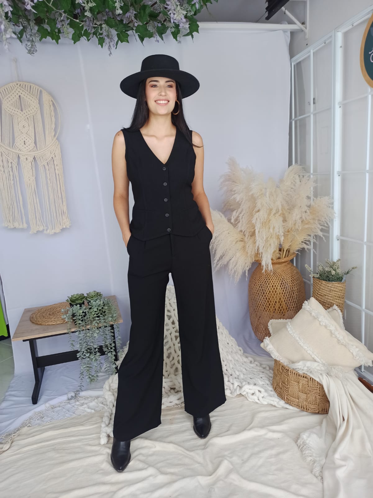 Elevate your style with our "Colombian Dual-Tone Waistband Pants and V-Neck Vest Set"! Designed and crafted in Colombia, this set features a high-waisted, wide-leg pant with a unique dual-tone waistband, adding a touch of vibrancy to your outfit. The V-neck vest complements the ensemble, offering a relaxed fit. Made from a soft Rayon-Polyester blend, it ensures supreme comfort. Available in S, M, L, and XL, this set combines Colombian craftsmanship with modern elegance. Perfect for special occasions or everyday wear, embrace Colombian fashion today!