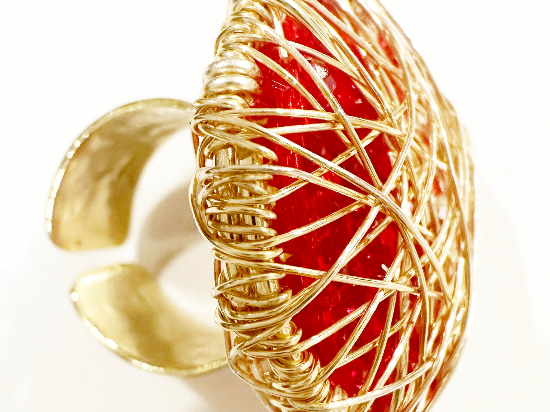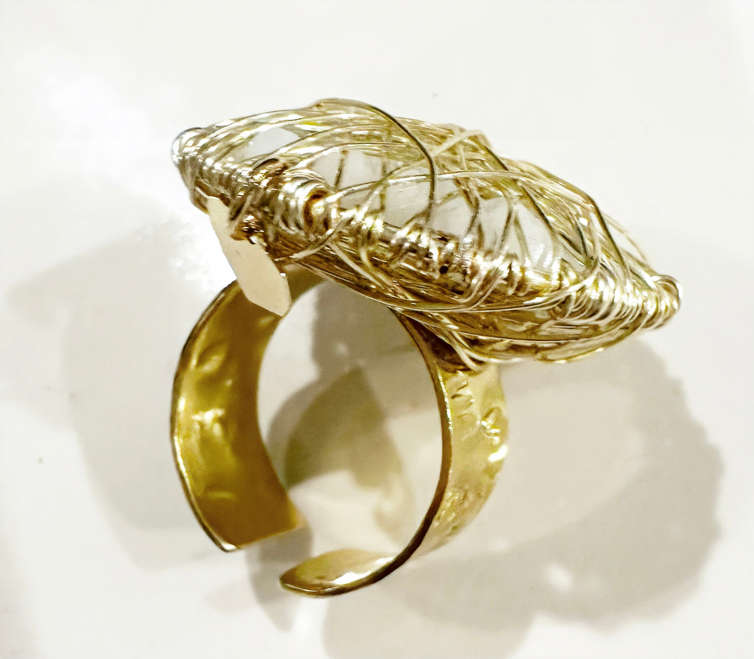 Adjustable Crystal Dreamcatcher Ring - 14K Gold