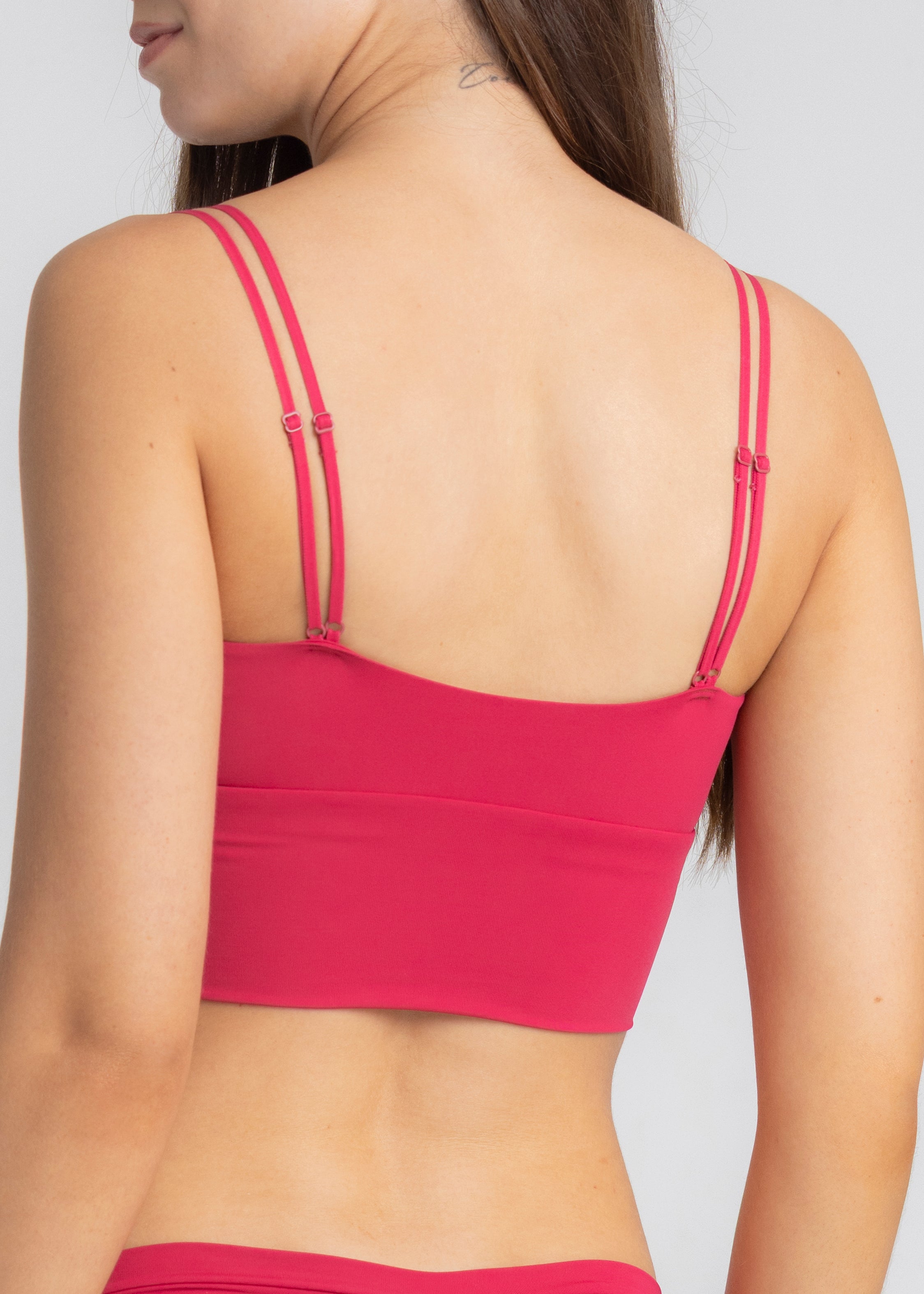 It features adjustable thin elastic straps, allowing you to customize the fit for all-day comfort. The wide base provides support and makes it perfect to wear on its own or styled as an outerwear piece, easily elevating any outfit.
