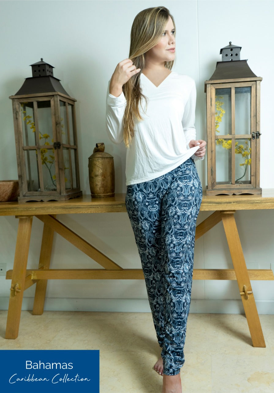 Long Sleeve Sleepwear Set with Stylish Printed Pants